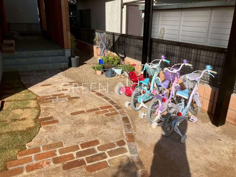 レンガや平板、砂利、アルミフェンス、木材、ピンコロ石、乱形石、などなど、、外構工事には様々な材料を使用可能なんです。