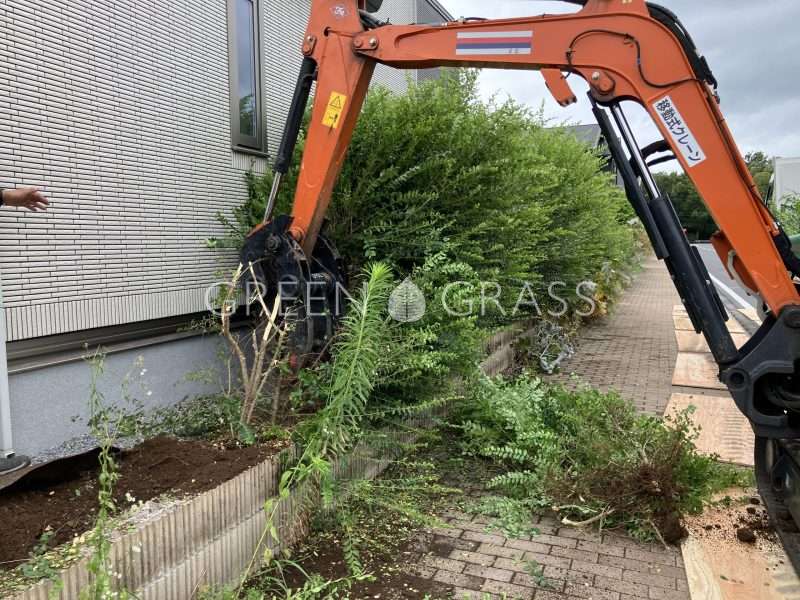 土留め際には生垣用に植栽が植えてあったのでこちらも全て抜根します。