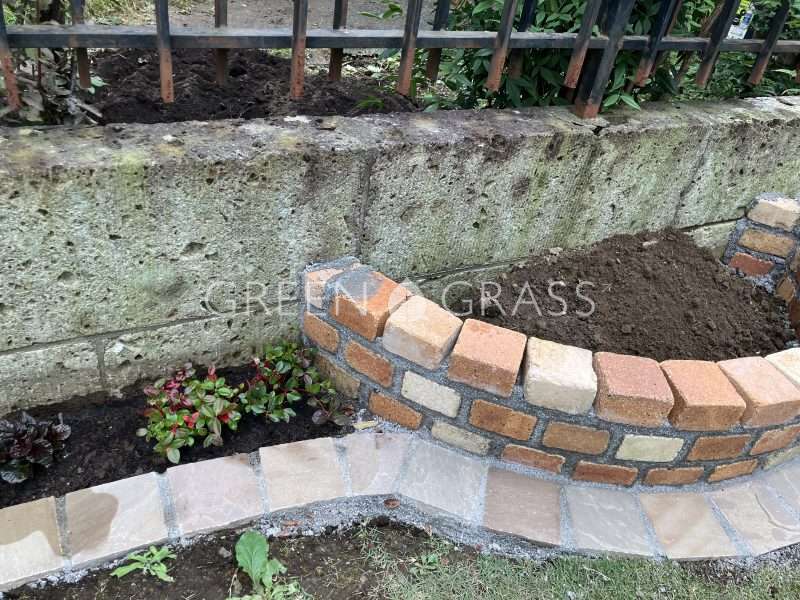 ゆるい曲線の場合一丁レンガでいい雰囲気がでます。
