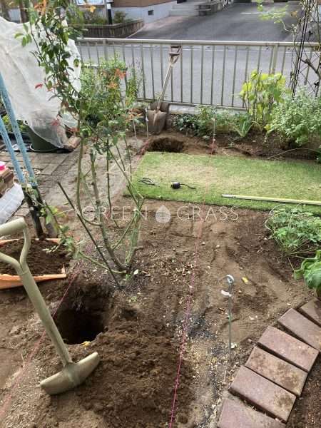 柱を建てる位置に穴を開けて、、
