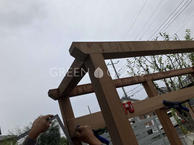 天然木を使用したGGオリジナルパーゴラ作成中