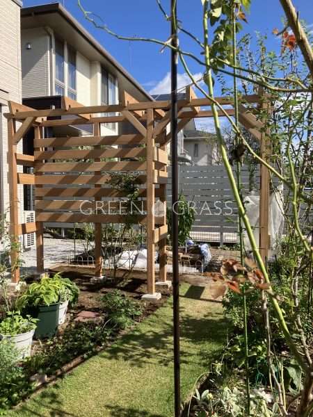 天然木を使用したGGオリジナルパーゴラ作成中 まず..
