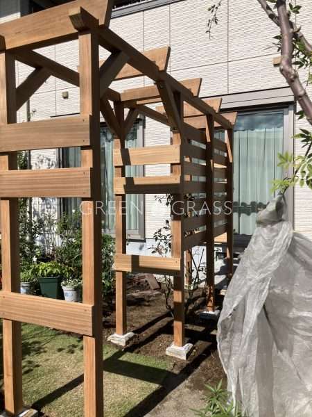 限られたスペースにパーゴラなどの構造物を施工したい時