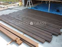 M様邸では、米杉を使用したウッドデッキと木樹脂製のテラスを施工します。