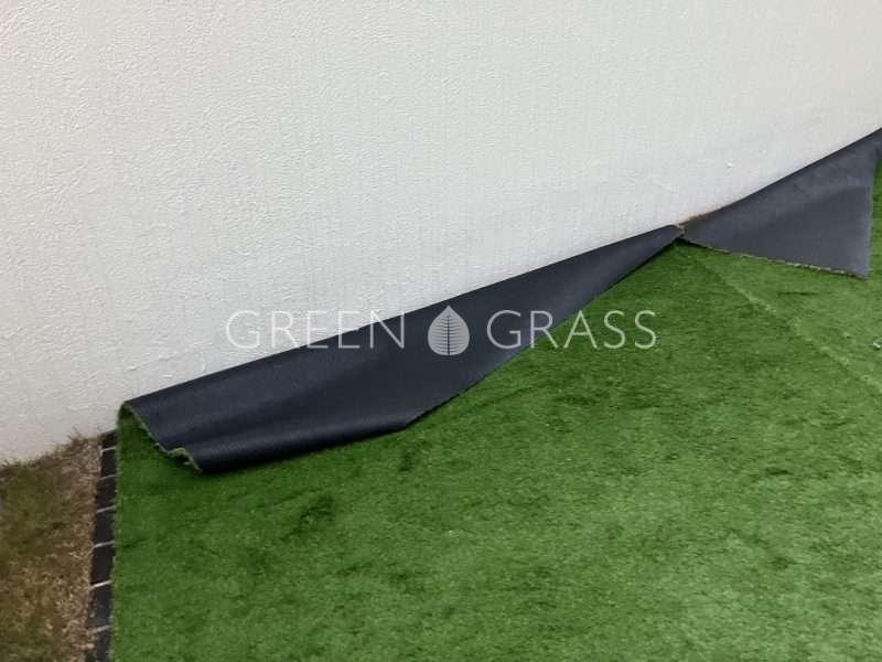 人工芝ってロール状で現場に納品されるので施工直後は芝の葉がぺたーっとしています。