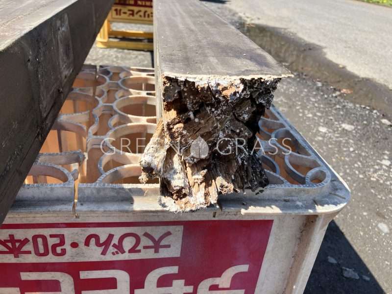 天然木なので腐敗していますが、旦那様が作って下さったお手製パーゴラなので活用できる部材をなんとか蘇らせたい