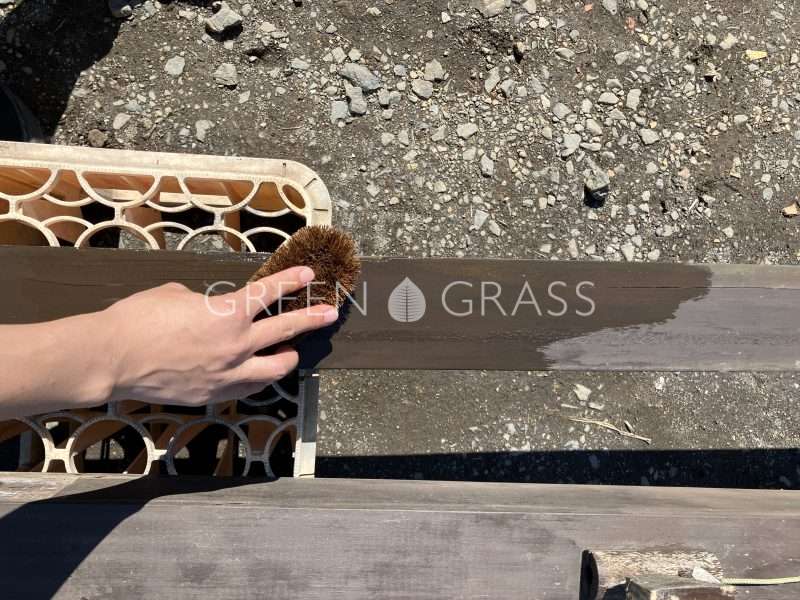 塗布作業の途中から木がぐんぐん防腐剤を吸い込んでくれているのを実感します。