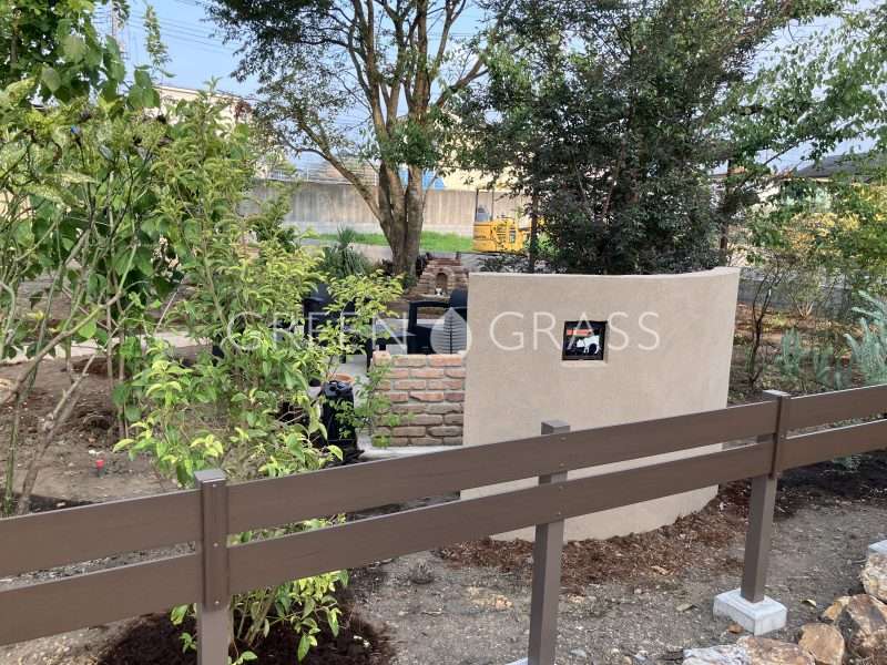 GGオリジナルバーベキュー炉も施工しました。バーベキュー炉は使い勝手の良い高さに仕上げました。