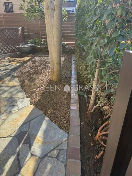 植栽エリアと庭の境目にはエッジを施しきちんとエリア分けを。