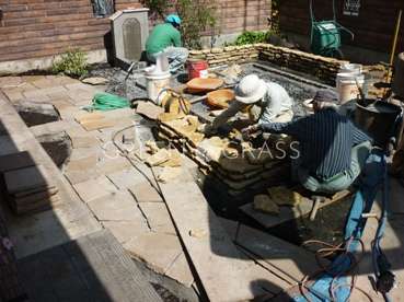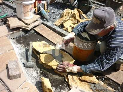 乱形石の仕上がりがきれいです。石貼りは、目地のはしり方、リズム、石と石のつなぎ、空間に合わせたサイズや加工などなど熟練の技術が多く発揮されるポイントでもあります。