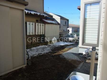 南側にあるガーデンスペースを工事中。