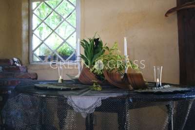 渋みのある鉢に大胆に植え込んだ植物。