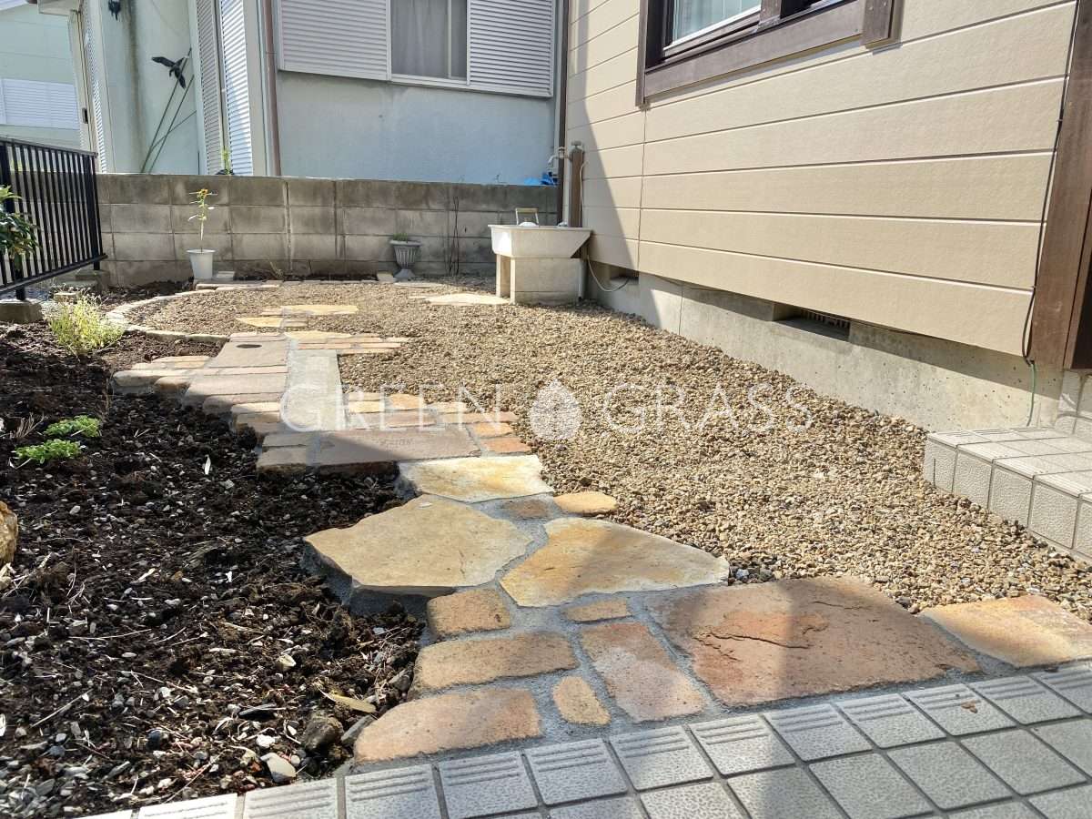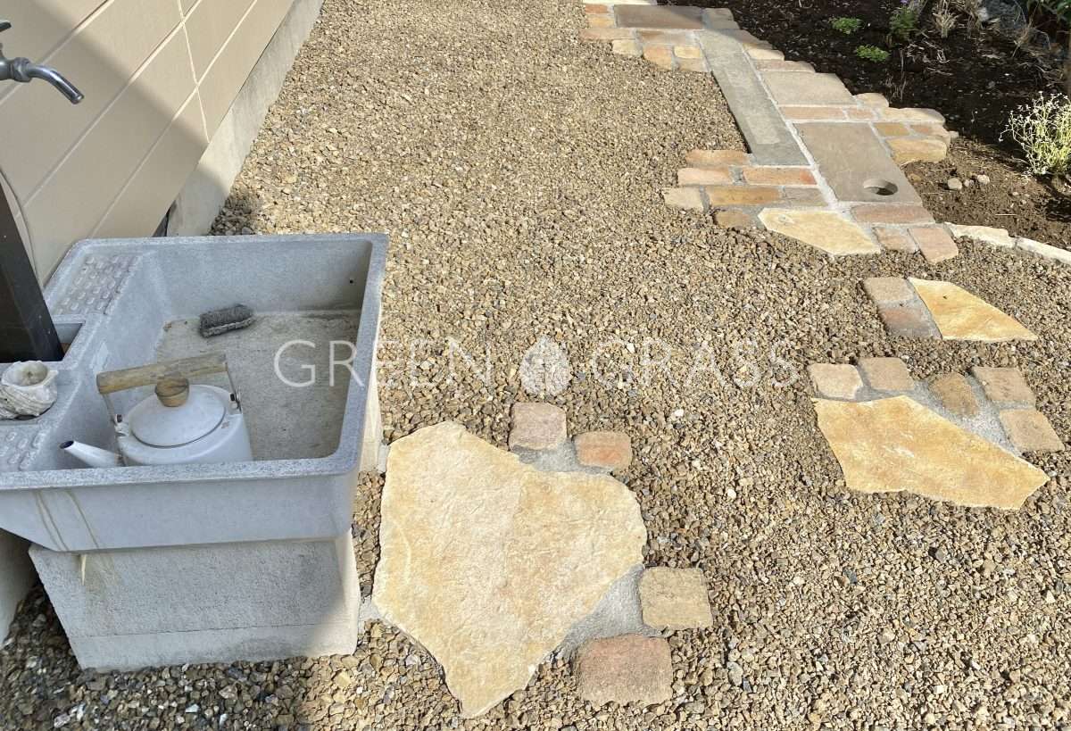 水道前には乱形石を設置し足元を安定しやすさをUP