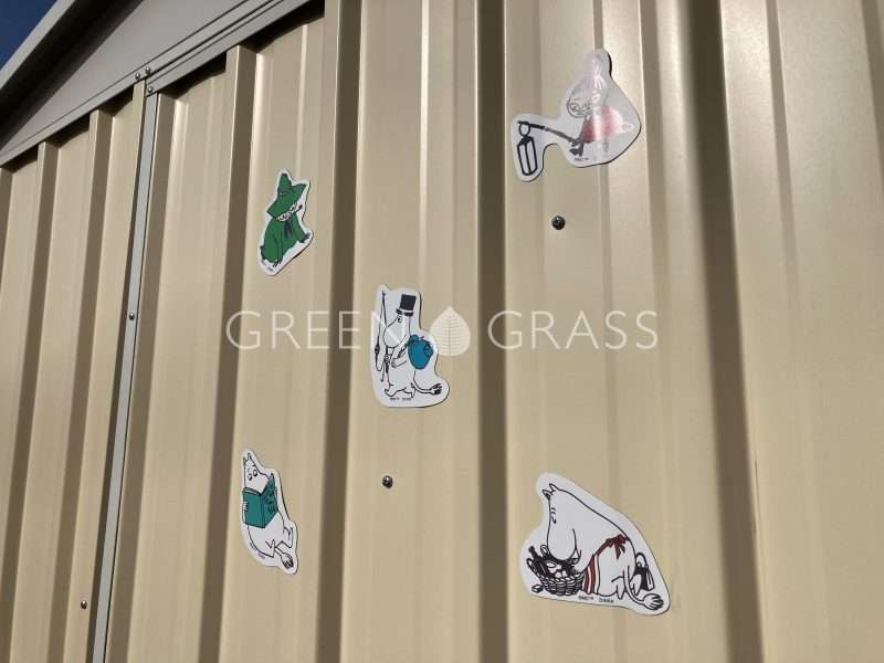 ムーミンのマグネットを貼って物置をカスタマイズして遊び心をプラス