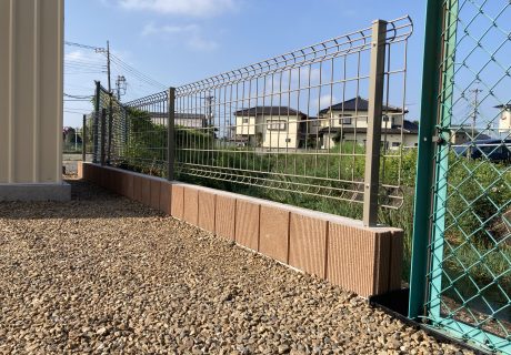 花壇の中の化粧砂利は単粒タイプにしたことで、敷地全体に敷いている化粧砂利とのメリハリをつけました