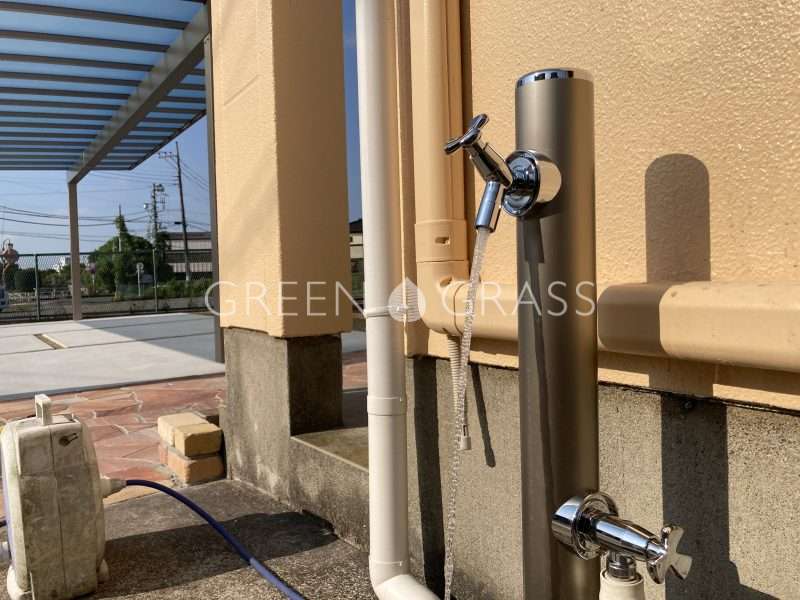 常時ホースをつないでおけるように蛇口は2つタイプにしました