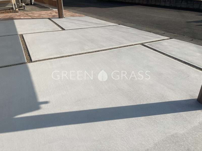 土間の目地割も単調にならないよう動きを出しつつタイヤの位置や車からの乗り降りを計算し尽くしたストレスフリーな設計