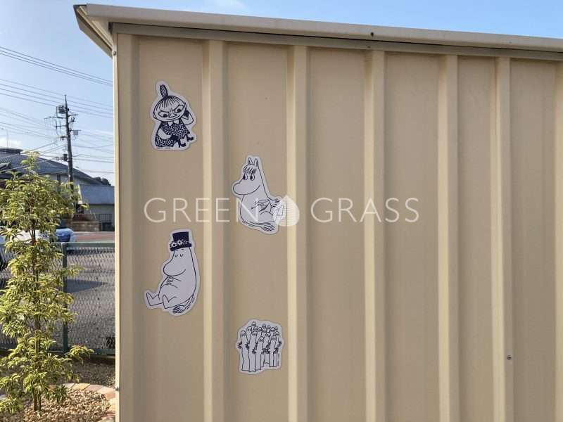 ムーミンのマグネットを貼って物置をカスタマイズして遊び心をプラス