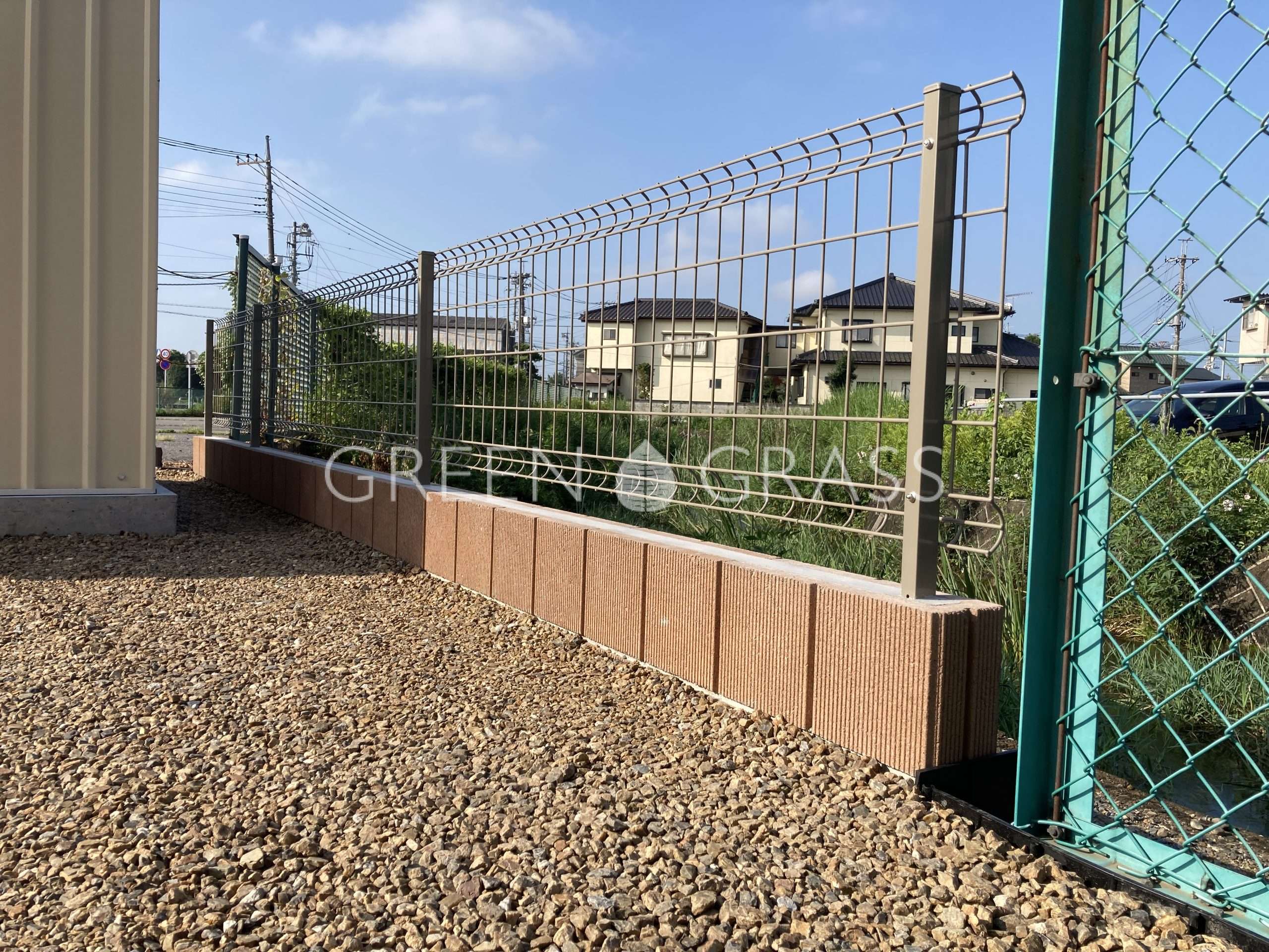 花壇の中の化粧砂利は単粒タイプにしたことで、敷地全体に敷いている化粧砂利とのメリハリをつけました