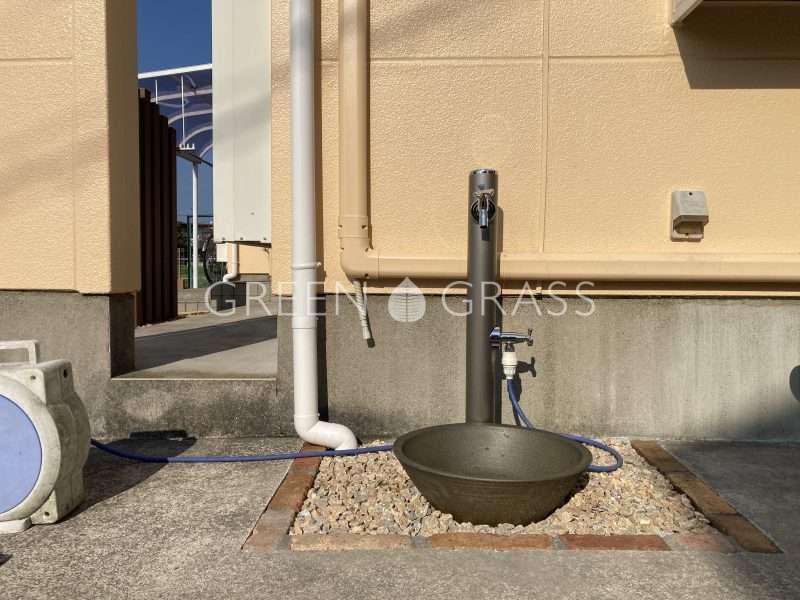 常時ホースをつないでおけるように蛇口は2つタイプにしました