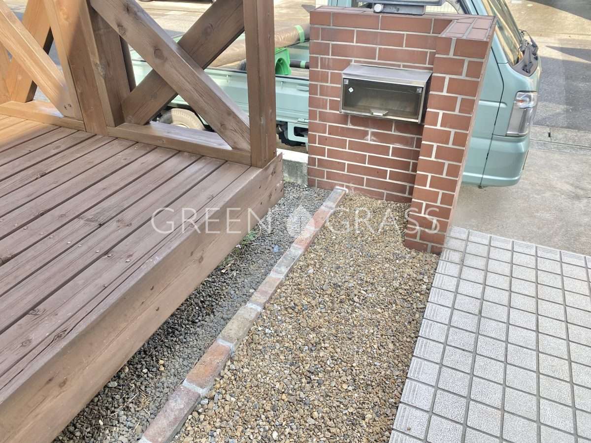 既存門塀のレンガに近い赤いレンガをエッジに使用し