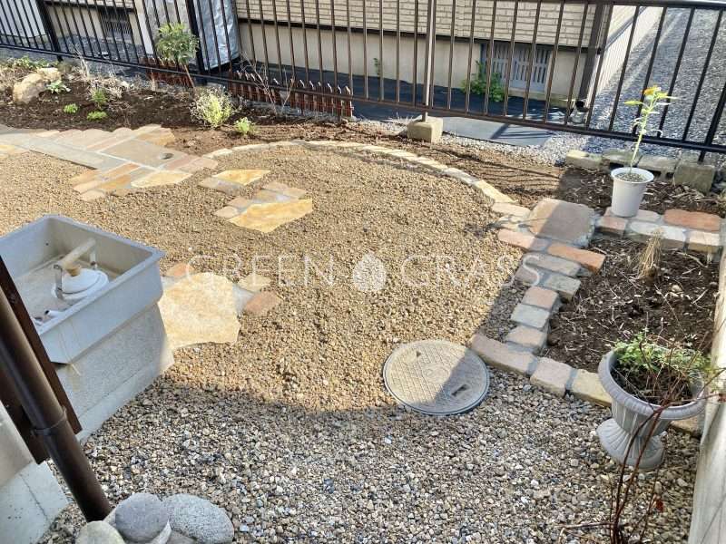 花壇兼パスのデザインと馴染むようなデザインにしました