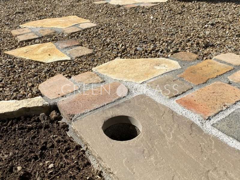 水道前には乱形石を設置し足元を安定しやすさをUP