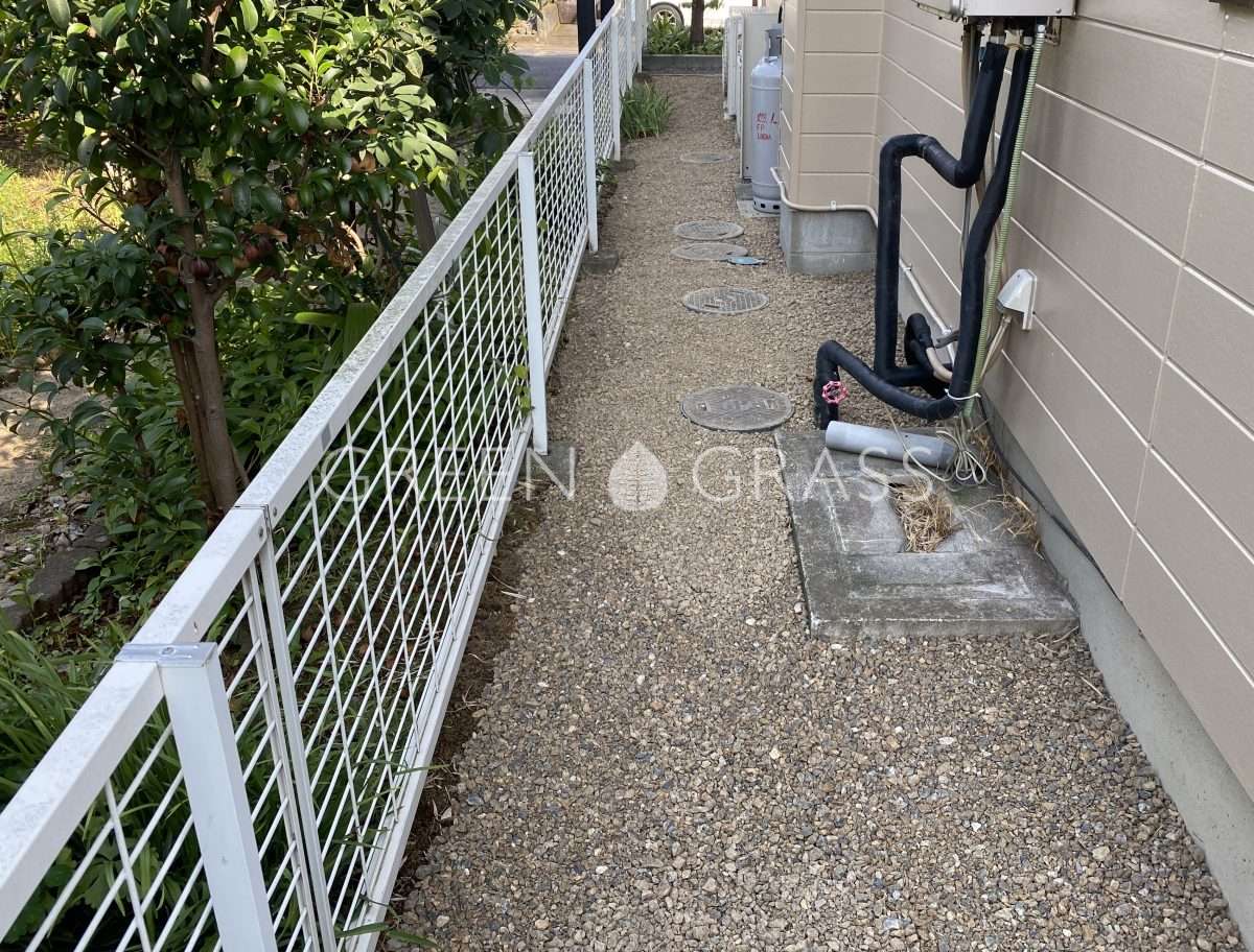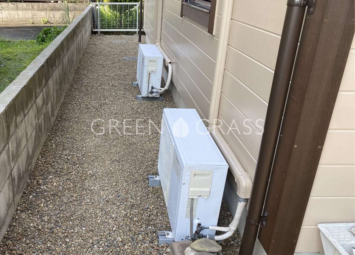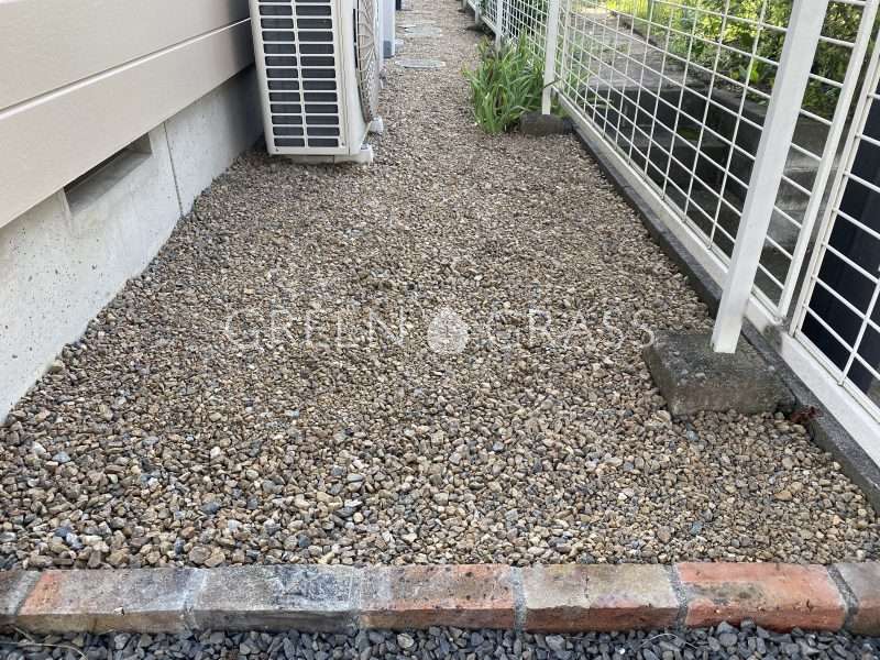 家の周囲をぐるりと囲う様に明るめの砂利を配置