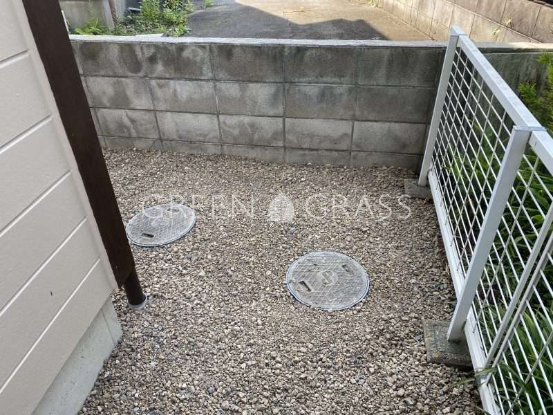 水道前は砂利より石材の方が足元が安定するので石材を設置